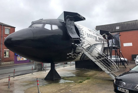 5. مطعم ستيكس أون بلاين - بريطانيا: من آسيا ننتقل إلى القارة الأوروبية، وتحديداً إلى مدينة بولتون شمال غرب بريطانيا، حيث سنتناول وجبة عشائنا في مطعم ستيكس أون بلاين Steaks on a Plane، والذي يعني بالعربية شرائح اللحم على متن طائرة، وهو مطعم للمأكولات التقليدية تم افتتاحه في طائرة بوينغ 737 قديمة. والجدير بالذكر أنه مطعم بتصميم بسيط وأسعار مناسبة للجميع على الرغم من قائمة الأطباق اللذيذة التي يقدمها. أضف إلى ذلك أنه يتيح لزبائنه زيارة قمرة القيادة والتقاط صورة مع قادة الطائرة، الذي قد يكون الشيف الذي يعد قائمة الطعام.
