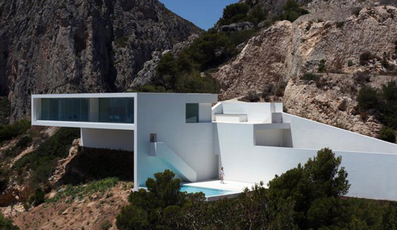 3. "House on the Cliff"، أليكانتي، إسبانيا: بُني هذا المنزل في منحدر شديد الانحدار. وألهمت طبيعة الأرض غير الاعتيادية والمعقدة بناء هيكلٍ مبتكر وثلاثي الأبعاد. وصُنع هذا المنزل من الخرسانة، وهو معزول تماماً من الخارج، وهو في الوقت ذاته مغطى بجص الجير الأبيض، والذي اختاره المعماريون لمرونته وسلاسته.