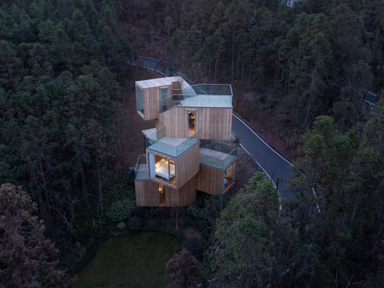 4. "Qiyunshan Tree House"، شيونينغ، الصين: هذا الهيكل ليس مبنياً على شجرة، ولكنه يقف بشموخ بارتفاع يصل إلى 11 مترا بين غابة من أشجار الأرز الحمراء في مقاطعة آنهوي شرق الصين. ويؤدي الدرج الحلزوني للهيكل إلى غرف بسيطة مع نوافذ واسعة تعمل كإطار للمناظر الخلابة للمنطقة. وصُممت غرف النوم وغرفة المعيشة لتكون صغيرة عن قصد، إذ أراد المهندسون المعماريون إنشاء مساحات مراقبة بدلاً من منزل عائلي واسع.