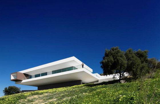5. "Villa Escarpa"، الغرب، البرتغال: يُعد هذا الهيكل عملاقاً هندسياً أبيض اللون يتوازن على جرف حاد مطل على قرية برايا دا لوز. و تمحورت فكرة هذا التصميم حول خلق انطباع أن المنزل يطفو فوق المشهد الطبيعي. وساهم في ذلك إضافة شرفة على السطح، ما يُضيف انطباعاً بخفة الهيكل. ولا يُعد هذا الهيكل جذاباً فحسب، فهو متين، وهو أمر مهم في وجه الرياح في المنطقة.