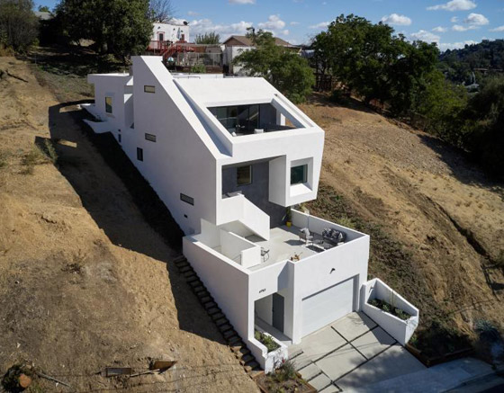 6. "Slice and Fold House"، كاليفورنيا، الولايات المتحدة: يُمثل هذا المنزل قطعة من الأوريغامي مطوية بعناية. ويُجسد المبنى تلاعباً رائعاً بين الخطوط الحادة ذات الزوايا، والفتحات من مختلف الأحجام، والتي تسمح للضوء بملء كل غرفة. وتتكون واجهة المنزل من أشكال وأحجام مختلفة، وإن أكبرها عبارة عن سطح المنزل الذي يوفر مشاهد بانورامية مذهلة لجبال سان غابرييل.