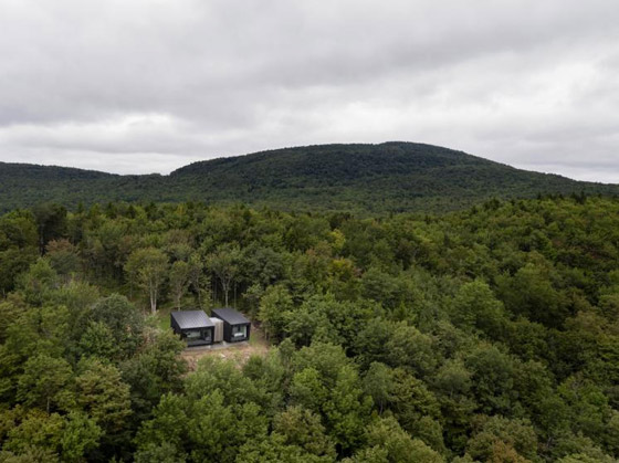 7. "La Binocle"، كيبك، كندا: تحتضن قمة جبل في كيبك هذا المنزل الذي يتميز بنوافذة الضخمة التي توفر مناظر بانورامية للمنطقة المليئة بالأشجار. ويتكون الهيكل الأكبر من غرفة المعيشة، بينما يتكون أصغرهما من غرفتي نوم. وأتى تصميم المنزل بشكل جزئي بسبب إضافة الأسطح التي تنحدر باتجاه الأسفل بشكلٍ يحد من كمية ضوء الشمس خلال أشهر الصيف الأكثر دفئاً.
