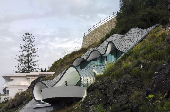 8."Casa Del Acantilado"، غرناطة، إسبانيا: يُني هذا المنزل تكريماً للمهندس المعماري أنطوني غاودي. ومن تصميم المنزل، يتبين للمرء أن مكان وجوده ألهم شركة الهندسة المعمارية وراء هذا الهيكل، بدلاً من الحد من إبداعهم. والمنزل ليس مدفوناً في التل فقط، إذ أنه يختبئ تحت سقفٍ مزخرف أيضاً. وعند رؤيته من الأعلى، فإنه يبدو كجلد تنين أو أمواج البحر.