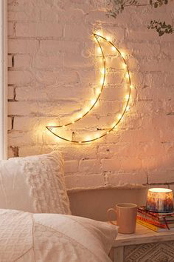 3- يمكنك تصميم فروع للزينة لتعليقها على الحائط، مصممة من أشكال الهلال و النجوم مع اللمبات الملونة الصغيرة، وهذه الفكرة تصلح لغرفة المعيشة وغرف النوم.