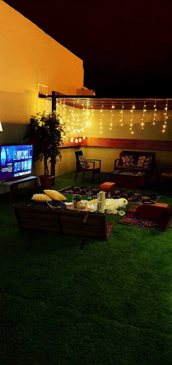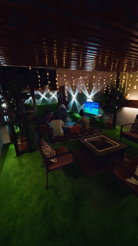 وعن تفاصيل وحدات الغضاءة المستخدمة في التصميم الجديد لسطح منزله قال: “بالنسبه للأضاءه فهي بعد تكلفتها قليله ممكن اللي تعبني شوي هي التمديدات ومحاولة اني ما اخليها تخرب المنظر.. الاضاءه المعلقه بالجلسه كلها كانت عن طريق النت طلب وبأسعار رخيصه جداً ونصيحه اطلب اكثر من قطعه حتى تقدر تغير واذا خرب شي تستبدله بسرعه”.