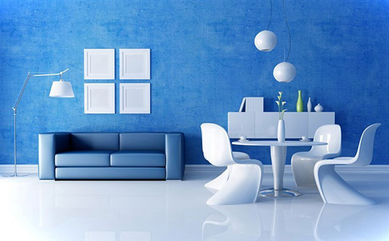 اللون الأزرق من أفضل الألوان التي يمكن استخدامها في غرف النوم والمساحات المخصصة للعمل. يحفز هذا اللون النظافة والصحة والإنتاجية لإنه يذكرنا بتواجدنا بجانب البحر، ويفضل تعزيز حضور هذا اللون باستخدام عناصر من الخشب الطبيعي. ويمكن استخدام اللون الأزرق في السجاد والقطع الفنية والاكسسوارات وورق الجدران.
