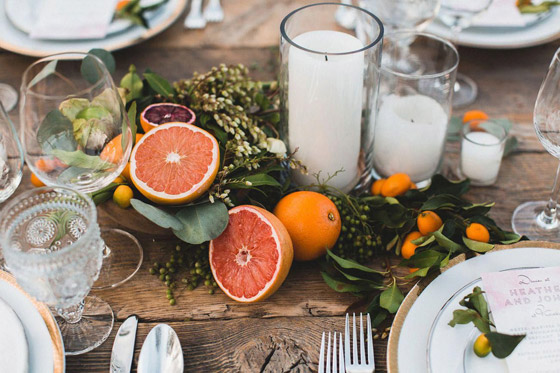 •توضع الفواكه والأغصان الصغيرة حول شموع معطرة لتعطي جو شاعري.