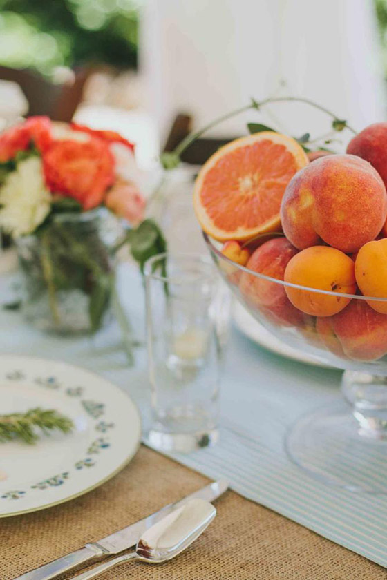 •تستعمل الفواكه داخل مزهرية شفافة مليئة بالورود البيضاء، لتصنع مزيجًا بين الزينة التقليدية للطاولة والزينة الجديدة التي تتبع الديكور البوهيمي.