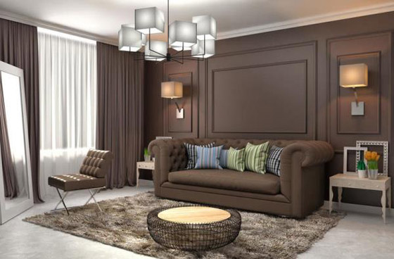 يجب مراعاة ألوان الجدران، مع طلائها بلون شتوي، لكن، تبدو الألوان الفاتحة مرغوبة للمفروشات، بخاصّة في الغرفة الضيّقة. أمّا إذا كانت المساحة فسيحة، فيمكن اختيار نوع قماش المفروشات وألوانه وألوان طلاء الجدران، بدون قيود. من جهةٍ ثانيةٍ، من الضروري تجنّب توزيع الوسائد المعرّقة والمعدّة من قماش الساتان والمذهبة... بل تلك الفرو ومن جلد النمر والجلد، وذلك على خلفيّة (الأريكة) تحمل لونًا داكنًا سادة. ومن الجذّاب توزيع مشالح الفرو وسط الأرائك وعلى ظهرها أو على أذرعها.