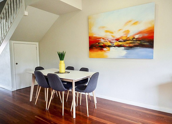 2- اختيار طاولة الطعام: هذا هو المكان الذي يتم فيه تناول غالبية الوجبات والتجمعات العائلية - لذلك من المفيد أن نجعلها نقطة جذب مميزة.لا وتقول ويلسون "يمكن أن يكون تصميم الطاولة الجميل أو القطعة المركزية الجذابة هو الفرق بين غرفتك التي تبدو جذابة أو متوسطة الجاذبية. الزهور الموسمية الطازجة أو الشموع أو النباتات الخضراء في إناء بسيط وأدوات المائدة الأنيقة تساعد على إنشاء لمسة مميزة."