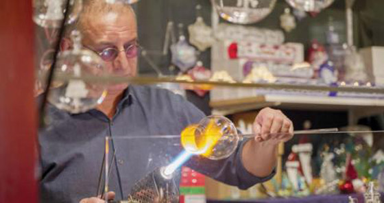 وهذا هو الحال أيضاً بالنسبة لهلموت بارتهولمز، مالك ورشة النفخ في الزجاج "تورينجر فايناخت" أي الكريمساس في تورينجر. ويقول "نحن نبدأ التخطيط للكريسماس المقبل في وقت مبكر للغاية اعتبارا من بداية العام في يناير". وكان يتم انتاج الحبات الزجاجية المفرغة في طريق رينشتايج في غابة تورينجن الواقعة بجنوب البلاد في قرابة العام 1755 والتي كانت تستخدم كألعاب للأطفال أو مجوهرات. واعتباراً من 1820، بعد إدخال المنفاخ تمكن القرويون من نفخ قطع أكبر.