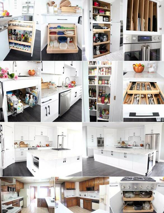 2- إعادة تصميم خزن وأدراج المطبخ باستخدام مفاهيم مدمجة لزيادة مساحات التخزين.