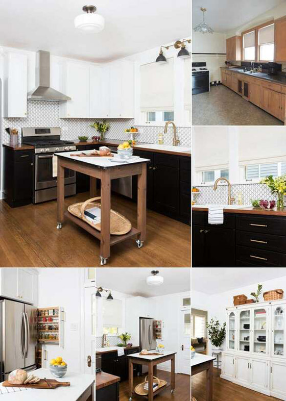 3- إحياء المطبخ بتغيير الألوان المملة واستخدام اللونين الأبيض والأسود للخزن والأرضيات.