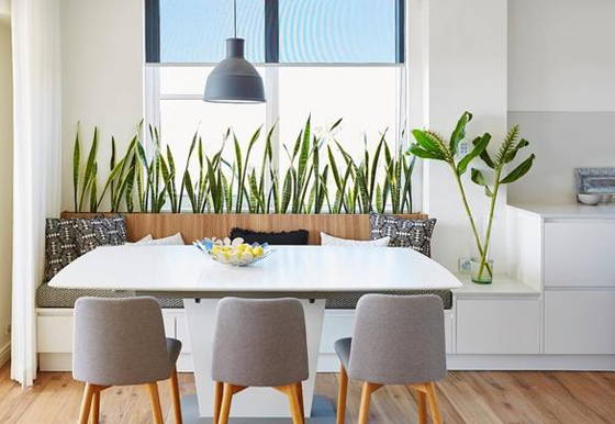 2- امنح زاوية الفطور لمسة مميزة عن طريق تركيب مجموعة من ألواح البلاستيك الأنيقة على الجدران.