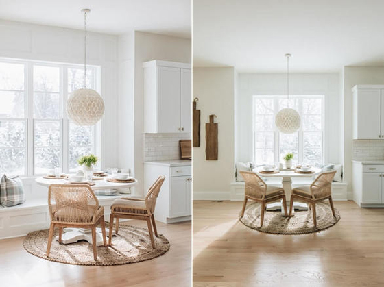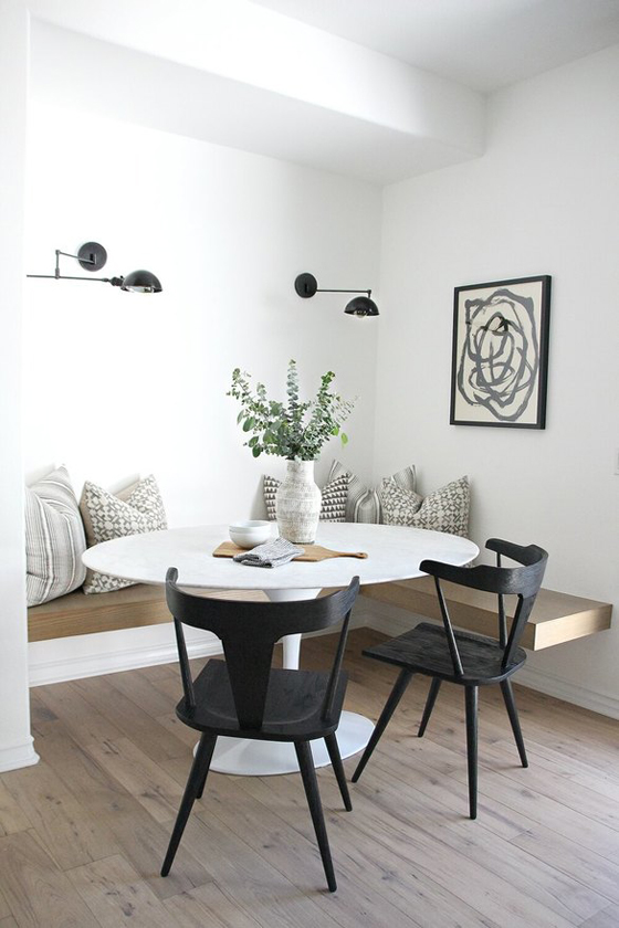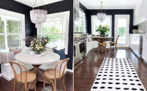 4- طريقة أخرى لتسليط الضوء على زاوية الفطور عن طريق طلاء الجدران بالأبيض والأسود.