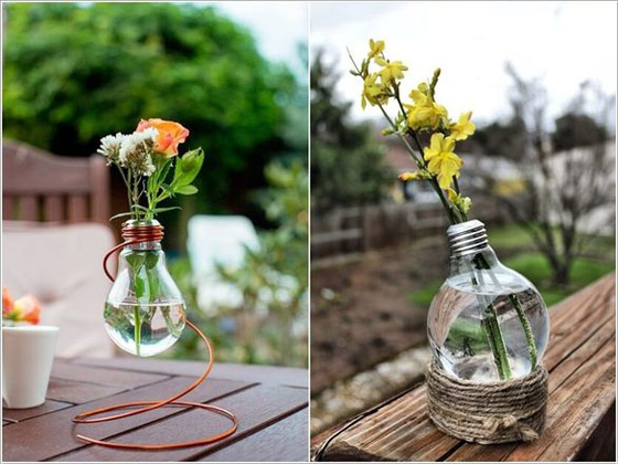 2- تصميم مميز لمزهريات مصنوعة من المصابيح الزجاجية القديمة.