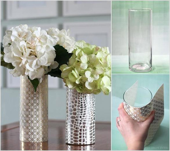 10- وأخيراً، يمكن تصميم مزهرية بسيطة عن طريق تغطية قطرميز من الزجاج بقطعة من القماش المزركش.