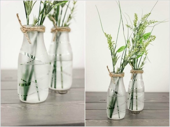 4- استخدام عبوات زجاجية لعرض الأزهار بطريقة فنية بعد تغطيتها بورق لاصق مزركش.