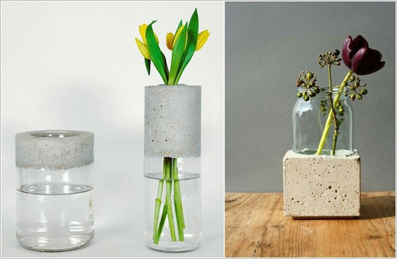7- مزهرية مميزة مصنوعة من خليط من الإسمنت والزجاج لعرض الأزهار.