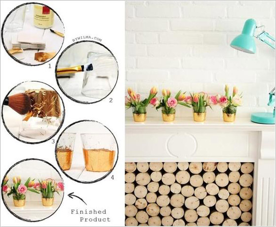 9- تصميم هذه المزهريات الرائعة وطلاءها بلون ذهبي يضفي عليها لمسة مميزة.