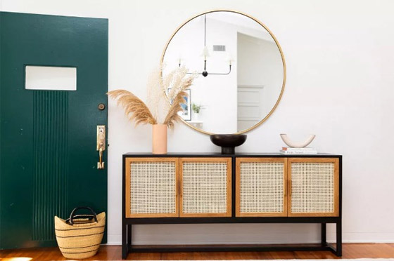 عكس ما يعتقد الكثيرون، تعد المرآة من قطع الديكور الأساسية في ما يتعلق بتعزيز المساحة في الأماكن الصغيرة والضيقة، خاصة مدخل المنزل، كما أنها تخدم غرضين، هما: تعزيز المساحة، واستخدام لإلقاء نظرة أخيرة قبل المغادرة. لذا، يمكنك الاستعانة بالمرآة في المدخل، لكن دون مبالغة في أي قطع أخرى، لتفادي مظهر التكدس، الذي يؤدي لنتيجة عكسية غير مستحبة.