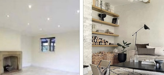 وقامت ميكيلا بمساعدة زوجها بتركيب عوارض خشبية قاما بتفصيلها بنفسيهما لسقف غرفة المعيشة، بتكلفة 500 دولار فقط. واعتمدت ميكيلا على سوق فيسبوك، وعدة متاجر للحصول على المنسوجات والمفروشات بتكلفة قليلة.