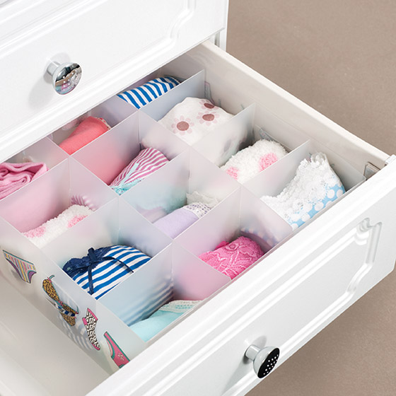 هناك حل ممتاز للحصول على كل شيء في متناول اليد، وهو تنظيم خزانة الملابس باستخدام أدراج التنظيم. بهذه الطريقة يمكن الاحتفاظ بالأحزمة أو الساعات أو النظارات الشمسية في نفس المكان، مما يوفر مساحة في أجزاء أخرى من الغرفة. وتبقى فكرة تخزين المجوهرات مثالية أيضاً، ويمكن أن تكون مقصورة مخفية لاستخراجها حسب الحاجة، اعتماداً على المساحة المتوافرة، فيمكن إدخال درج مجوهرات للحفاظ على جميع الملحقات الخاصة بالترتيب، حتى أثمنها.