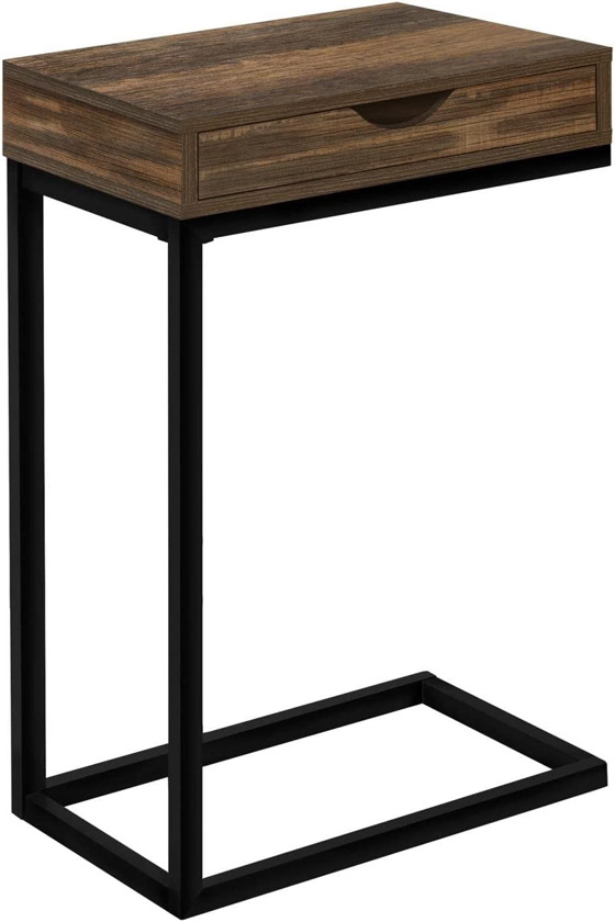 تعد الطاولة المستطيلة المتينة على شكل حرف (C)، من أفضل القطع الموفرة للمساحة، خاصة في غرفة المعيشة، حيث إنها متعددة الاستخدامات، وتتميز بسطح طاولة متين بلمسات خشبية بنية ريفية، كما أنها مدعومة بإطار معدني أنيق؛ وتوفر استخدامات عديدة من طاولة وجبات خفيفة، إلى طاولة للقهوة والمشروبات الساخنة، وصولاً إلى مكتب لوضع الكمبيوتر المحمول، أو لعناصر الديكور الأخرى. وتنزلق هذه الطاولة الجانبية بشكل مثالي أسفل معظم الأرائك، ما يجعلها حلاً مدمجًا وموفراً للمساحة، بالإضافة إلى أنها تحتوي على درج تخزين عملي بمقبض مفتوح عريض، لأجهزة التحكم عن بُعد، والمجلات، وغيرها من الملحقات.
