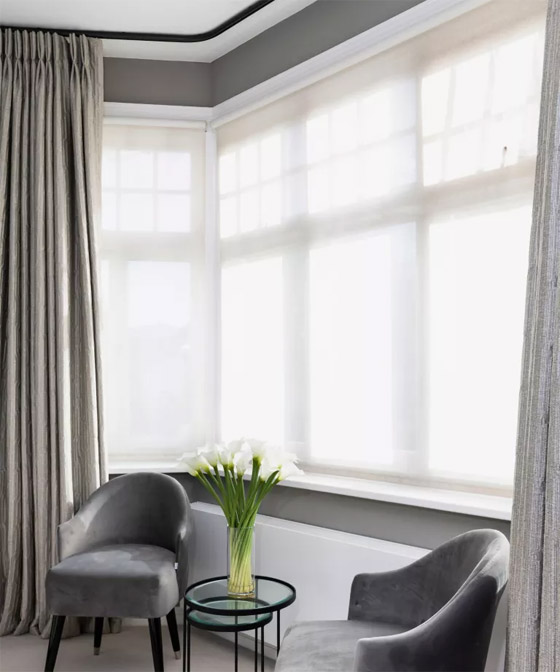 على الرغم من أن إضافة ارتفاع إلى الغرفة قد لا يبدو أنه يعالج ضيق الغرفة لأول وهلة، إلا أن رسم العين لأعلى يمكن أن يصرف الانتباه عن العرض الإجمالي للغرفة ويعطي مظهرًا من الاتساع. تنصح شارلوت راي، من شركة كامبل راي: "بتعليق الستائر على ارتفاع عالٍ نحو السقف لإعطاء انطباع بالارتفاع في الغرفة، وجعل الستائر طويلة بما يكفي لتسبح على الأرض". كما أن هناك طريقة أخرى لجعل أسقف غرفة المعيشة تبدو أعلى، على سبيل المثال، هي التأكيد على الميزات المعمارية الحالية مثل الحزم أو أعمال الجبس المعقدة أو التفكير في أفكار طلاء السقف لتقديم نقطة محورية جديدة ومثيرة للاهتمام.