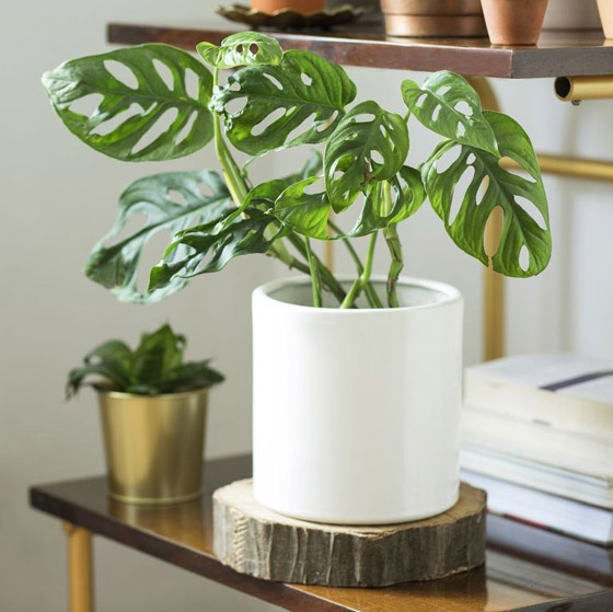 يعرف أيضاً بـ"Monstera Deliciosa"، وموطنه المكسيك وأميركا الوسطى، ويتميز هذا النبات الاستوائي بأوراق بها ثقوب، ما يضفي عليه طابعه الغريب، ويحتاج إلى سقي معتدل وإضاءة غير مباشرة (أفضل من الساطع إلى المتوسط)، لكن انتبهي أيضاً فهذا النبات سام للقطط والكلاب.