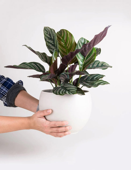 إذا كانت الخطوط هي أحد الأنماط المفضلة لديكِ، فإليكِ اختيارًا لك. وكالاتيا أورناتا، غالبًا يشار إليه باسم نبات المخططة، أو الصلاة، أو نبتة الحمار الوحشي، وله أوراق كبيرة مخططة، ما يجعله شائعاً في الداخل. حافظي على التربة رطبة قليلاً، وزوديها بضوء غير مباشر.