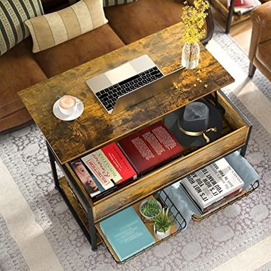4. Industrial Storage Pop-Up Coffee Table