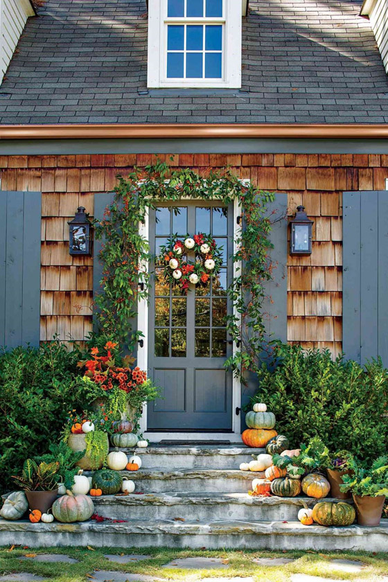 إضافة إكليل من الزهور الموسمية الجافة أعلى أبواب المنزل، واحدة من أفضل أفكار الديكور المميزة لاستقبال فصل الخريف، ويمكنكِ صنعها بنفسكِ في المنزل، أو شراؤها جاهزة من المتاجر المتخصصة في ديكورات المنازل.