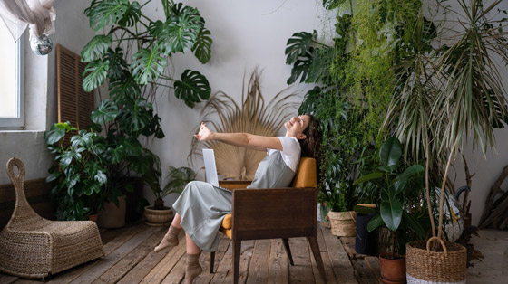 يحبذ معظم الناس، الذين يمتلكون مساحات واسعة في بيوتهم، إدخال بعض أنواع النباتات في تصاميم ديكور البيت، لإضفاء نوع من المتعة البصرية والراحة النفسية داخل أسوار المنزل من جهة، وللتجديد في التعامل مع شكل البيت والخروج من التقليدية من جهة أخرى. ويمكن التأكيد على أن وجود نباتات طبيعية في تصاميم المنازل، يساهم في توفير هواء نظيف ونقي، كما يقلل وجود النباتات التوتر، ويساعد على التنفس بكل راحة، ويحسن جماليات المكان، ويقلل الضوضاء البصرية، ويمكن أن يمنح المرء إن كان كاتباً أو موسيقياً تركيزاً أكبر يساعده على الإبداع.