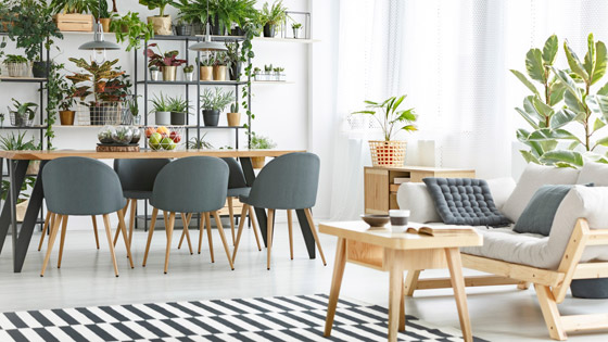 توزيع النباتات الخضراء، في المساحات الضيقة، له دور كبير في مد الساكنين بالراحة النفسية والسعادة، لذا يمكنكِ الاعتماد على استقبال النباتات الداخلية في مناطق متفرقة بالمنزل، لزيادة هذا الشعور.