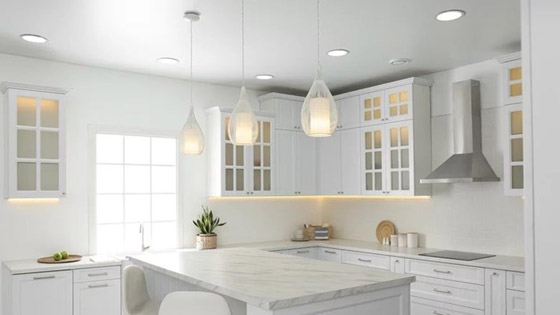 يؤكد المصممون الداخليون أهمية الإضاءة للتصميم، إذ غالباً يتم التغاضي عنها كعنصر جمالي، لذا ومن أجل تحقيق أقصى استفادة من الإضاءة الخاصة بك، عليك أن تعرفي كيف تضعينها في طبقات. هناك ثلاثة أنواع من الإضاءة، يجب أن تتوفر في كل غرفة، هي: الإضاءة المحيطة، والوظيفية، والمخصصة، ويجب أن يتم استخدامها بحيث يكون لديك تصميم إضاءة متوازن. وتضيء "الإضاءة المحيطة" المطبخ بالكامل، ويمكن أن تأتي من الضوء الطبيعي أو الإضاءة العلوية مثل الثريات، في حين توفر "الإضاءة الوظيفية" الإضاءة في مناطق محددة، قد تحتاج إلى مزيد من الضوء للتركيز على إجراء ما، والتي يمكن أن تكون تحت الخزانات، وتبرز "الإضاءة المخصصة" التفاصيل الجمالية أو المعمارية، باستخدام شمعدانات الحائط أو أضواء الصور.