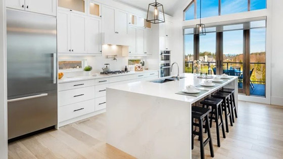 على غرار الإضاءة الاصطناعية، يجب أن ينعم مطبخك بالضوء الطبيعي، في حال كنت تريدين إضاءة مشرقة، وإحدى أسهل الطرق للقيام بذلك هي إضافة نوافذ أكثر أو أكبر، لذا اختاري النوافذ ذات الحد الأدنى من الإطار، للسماح بمرور أكبر قدر من الضوء. والنوافذ الممتدة من الأرض إلى السقف، أو نوافذ الصور، ستجعل مساحتك تبدو أكبر، في حين يمكن أن تجلب النوافذ المنحنية مزيداً من الضوء، لأنها تبرز من جانب المنزل. ومن الضروري، أيضاً، عدم حجب أي ضوء طبيعي يمر، بغض النظر عن حجم نوافذك، لذا ضعي في اعتبارك الستائر الشفافة حتى يمر الضوء، مع الحفاظ على الخصوصية.