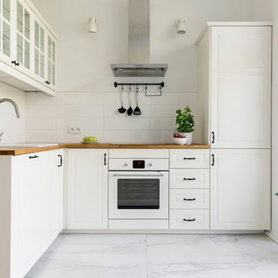 تعتبر الخزائن من أكبر عناصر المطبخ، وإذا كنت تبحثين عن جمالية فاتحة ومشرقة، فإن اللون الذي تختارينه مهم. ولمطبخ أكثر إشراقاً، اختاري ألواناً أفتح، فمثلاً اللون الأبيض هو أحد أكثر ألوان الخزائن شيوعاً، إذ إنه مناسب لكل الأوقات ومرن للتصميم، بينما يكون أيضاً سطحاً لامعاً يمكن للضوء أن يرتد منه. وفي حال كان اللون الأبيض الناصع والمشرق صارخاً للغاية بالنسبة لك، يمكنك اختيار اللون الأبيض الفاتح أو الكريمي، والذي لايزال من الممكن أن يكون سطحاً ساطعاً وعاكساً، كما تعتبر الألوان الرمادية الفاتحة أيضاً خياراً رائعاً.
