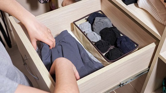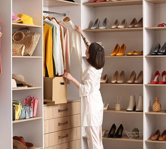 الملابس لها أماكن محددة على كل مستوى من الرفوف، لذا يفضل أن تحرصي على وضع الأشياء في المكان المناسب فهو وسيلة للاستفادة من كل مساحة داخل الخزانة بحرفية واحرصي على وضع الملابس بعيدًا عن الأحذية لكي لا تتسخ.