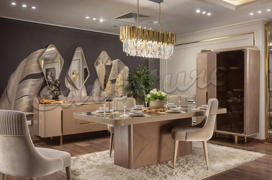 علاوة على ذلك فإنه قد يتوفر أشكال متنوعة وحصرية من أثاث غرف السفرة المودرن، والتي تعكس مظهر متألق لديكورات الغرفة، منها طاولات للسفرة تحتوي على الكثير من النقوشات، وهي تعكس مظهر فاخر لديكورات غرفة السفرة، كما تتوفر تصاميم بسيطة من الطاولات، تتناسب مع مساحات الغرف الصغيرة، وهناك بعض الطاولات المضاف إليها قطع من النحاس المنقوش، والتي تعكس مظهر فاخر للغرفة، كما توجد أشكال كثيرة من تصميمات كراسي السفرة، فهناك تصميمات منجدة بأكملها، وهناك تصميمات تحتوي على إطارات خشبية منقوشة، وفيما يلى سوف تتعرفين سيدتي على أشكال تصميمات غرف السفرة المودرن المتنوعه.