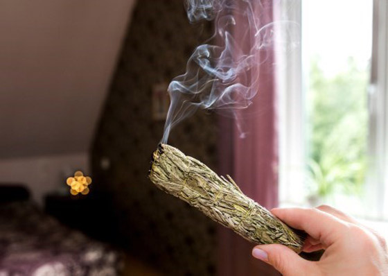 عبارة عن ورقة جافة تحرقينها على جانبٍ واحد، وحينها ستنبعث رائحة قوية مثل البخور. ويمكنكِ وضع الميرمية في صدفة أو وعاء، والمشي فيها باتجاه نافذة أو باب مفتوح لإخراج الطاقة السلبية من منزلك، وكذلك بخري كل المنزل وتحديداً الزوايا، حيث إن هذه هي الأماكن التي تحب الطاقة السلبية الاختباء فيها.