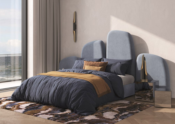 عندما تدخل غرفة النوم الرئيسية، وتشاهد السرير المريح، ستشعر على الفَوْر بضرورة أخذ قسط من الراحة في هذا المكان الأنيق، حيث ينقلك إلى رقي الأجواء القديمة؛ بفضل الطاولة الجانبية، والمصباحين الدائريين المعلقين فوق جانبي السرير. وأمام منطقة السرير، هناك ركن مريح للقراءة، سواء للعمل أو الاسترخاء في أوقات الفراغ، وتبرز فيه أريكة الوحدات، وكرسي بذراعين، يتميزان بروح محايدة، ومنحنيات دائرية؛ لتحقيق أقصى قدر من الرفاهية. وكمكملٍ زخرفي، توفر طاولة الرخام الصغيرة الانسجام والانتعاش بفضل إلهامها الطبيعي والمستقبلي، في حين تضفي المرايا المبتكرة والمصباح الأرضي الأناقة والتنوع، دون إغفال الإلهام الساحلي لسجادة «أغاثا».