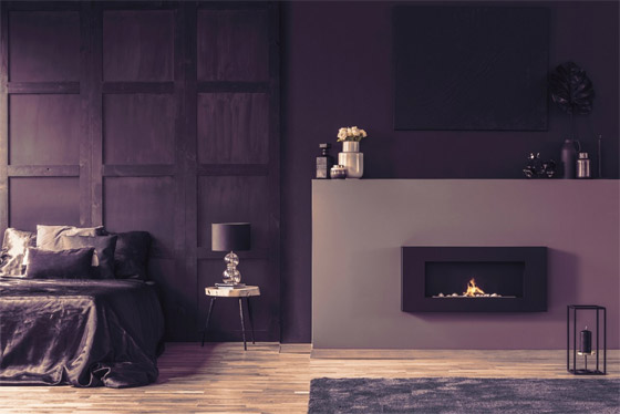 اللون البرقوقي يضفي أجواء درامية على ديكورات غرفة النوم الزوجية