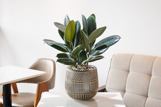 هو نبات داخلي مشهور بسبب مظهره الأنيق، وسهولة العناية به، إنه نبات استوائي يحب الحرارة، وينمو طويلاً جداً، حتى في الداخل، ما يجعله إضافة رائعة لديكور منزلك، ويُعرف نبات المطاط بقدرته على إزالة السموم من الهواء، لذا يحسن جودة الهواء الداخلي.