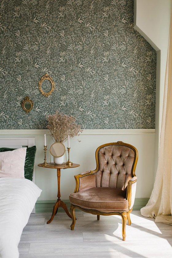 - الاكسسوارات: تماثيل كريستالية، لوحات من القماش القطني القديم ومرايا في إطارات كبيرة منحوتة مع طلاء مذهّب مثبتة على قواعد خاصة، مزهريات مليئة بالزهور، مناديل مزركشة مصنوعة يدوياً ووسائد مطرزة يدويًا.