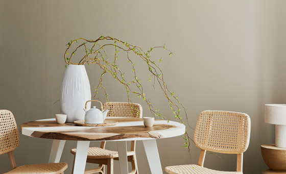 تنشر ألوان الأخضر الزيتوني والشوكولاتة العميقة والباذنجاني والخوخي، في إطار طلاء الجدران، مما سيجعل الإحساس بالطبيعة يكبر في المساحات الداخلية.