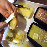 رجل يمسح قطعة خبز بزيت الزيتون |