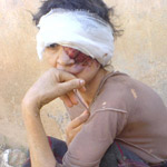 وتضيف أنها أصيبت بهذا المرض الغريب منذ خمس سنوات تقريبا، وكان آنذاك عبارة عن "حبة" صغيرة بجانب العين لتتطور بعدها عبر السنين إلى مرض خبيث أتى على نصف وجهها.. لأنه وببساطة الفقر منعها من العلاج، لا عمل لها فهي تعيش من صدقات المحسنين وتعيش على التسوّل، وهذا عندما كانت تستطيع المشي، لكنها الآن مقعدة داخل شبه غرفة.