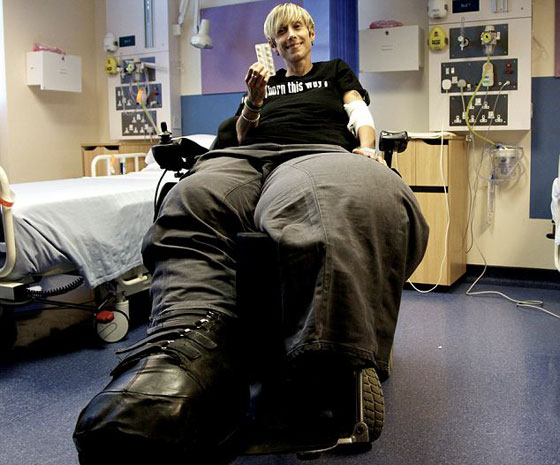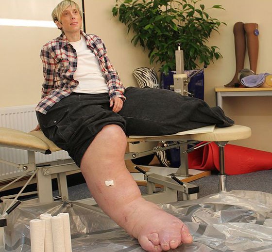 تعاني ماندي سيلرز (38 عاما)، من مرض نادر الذي بسببه لا تتوقف قدمها عن النمو، لكن الاطباء وعدوها بعلاج بعد تحديد الـ "DNA". وحتى بعد ان بترت قدمها اليسرى قبل عدة سنوات بعدما اصيبت بتسمم الدم الا انها سرعان ما عادت للنمو مجددا ولم تفيدها العملية التي قطعت قدمها بها.