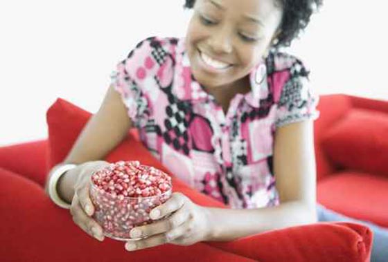 2- بذور الرمان للوقاية من أمراض القلب المختلفة: بذور الرمان هي مصدر غني بالعناصر الغذائية. فهو غني بالمغذيات النباتية من الفلافونويدات والبولي فينولات، التي تعمل سويًا كعنصر فعال جدا لمكافحة الأمراض. كما تساعد تلك المركبات أيضًا على خفض مستويات الكوليسترول والضغط المرتفع، مما يساهم في خفض مخاطر الإصابة بالأزمات القلبية والسكتة الدماغية.